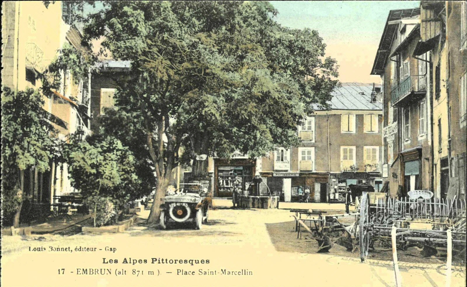 Place de la Mazelière au début du XX e siècle. Les rares Embrunais qui avaient une automobile devaient la déclarer en mairie.  (Archives départementales côte 39-279)